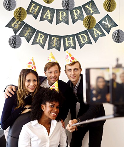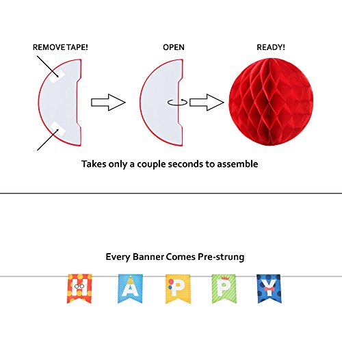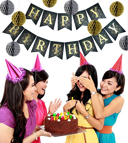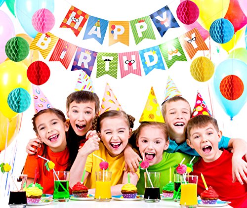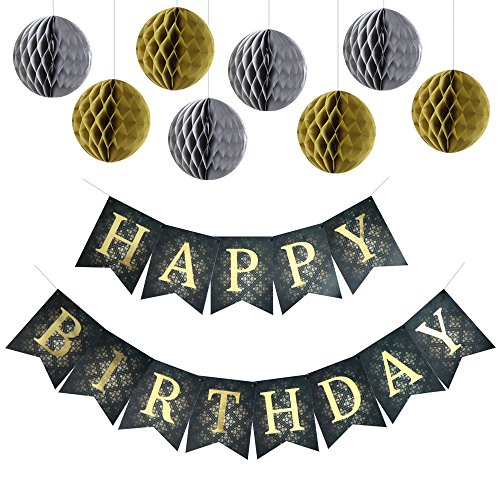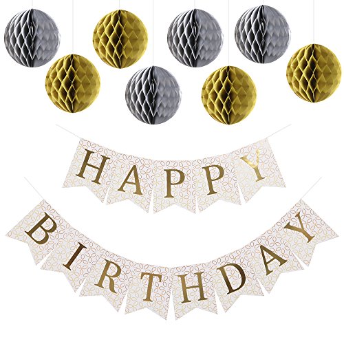 -. Title : Happy Birthday Decorations Banner With Set Of 8 Honeycomb Balls by Enfy