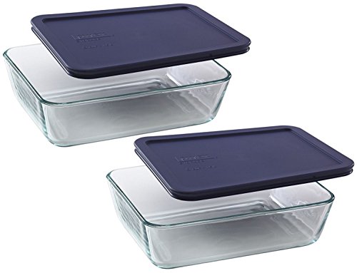 Pyrex Storage 6-Cup Rectangular Dish with Dark Blue Plastic Cover, Clear, Box of 2 Containers
