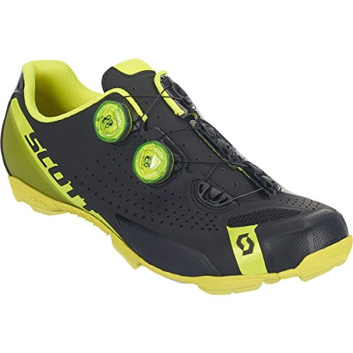 Studio : Scott Publisher : Scott Binding : Misc. Product Description Your riding might take you to singletrack sprints for the finish line, or hopping hurdles with your CX rig over shoulder, and your shoes shouldn't limit you to one or the other. The Scott MTB RC Shoes make for the perfect kicks to slip on before you head to the starting line, with stiff carbon soles, and uppers that feel like second-skin to keep you locked into place with two Boa dials for a perfectly cusomized fit. Lugged outsoles keep you locked to the ground on foot for on-foot sections, with an open tread pattern that sheds mud, leaving it on the course where it belongs The combination of microfiber and airmesh encourages air to move freely throughout the shoe, without compromising on security and support around the top of your foot. Two BOA IP1 dials weave their way across the top of your instep, offering almost limitless potential for you to adjust, then readjust, until you find just the right fit. As you'd expect from a high-end race shoe, the MTB RC comes adorned with a light, stiff carbon fiber sole prepared to deliver watts to the pedals as you mash down on them through flyovers or rutted rock gardens. Scott gives the HMX Carbon sole on the MTB RC Shoes a whopping 10 out of 10 on the stiffness index, ensuring all of the power you put down goes straight into the pedals, and isn't wasted. Atop the carbon, a lugged outsole provides you with grip and traction when you have no choice but to shoulder your bike to run up a set of stairs or through a nasty technical stretch of singletrack. 0