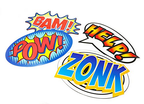 -. Feature : Variety: 13 styles of pre-cut lightweight, heavy-duty card stock. / Size: each piece measures approximately 13" inches x 9" inches. / Fun & colorful: bold & bright colors. / Party time: perfect for decorating a birthday party, hanging on the wall or using as photo booth props for superhero parties.
