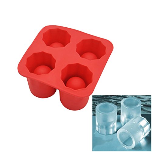 - Color: Red. - Material: Silicone. - Size: About 10 x 10 x 5.5cm/3.9 x 3.9 x 2.2inch. - Made of premium silicone, it is soft, safe and healthy, easy to clean and keep. - Flexible silicone ice cube trays are perfect for making party-themed ice cubes, chocolates, gelatins and more. - Let you enjoy freeze things whenever you want. Easy to clean and keep. - Perfect for DIY frozen ice, pudding , jelly candy, chocolate, etc. Package Including 1 x 4 Cup Shape Silicone Shooter Ice Cube Glass Mold Maker Summer Cool Ice Mould Ice Cube Tray 0
