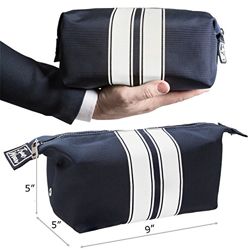 (True-Wear)/Bags/Cases/Toiletry Bags/DIRECT FROM USA/Toiletry Bag Shaving Dopp Kit for Men Navy Blue with White stripes ? Stylish Unique Travel Orga...