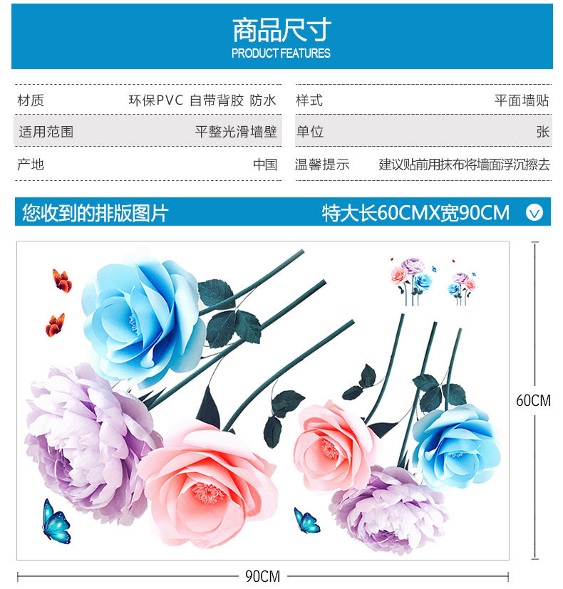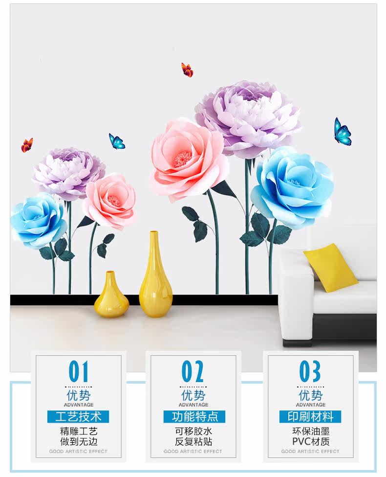墙贴纸创意卧室温馨小清新房间装饰品客厅自粘壁纸墙上贴画背景墙