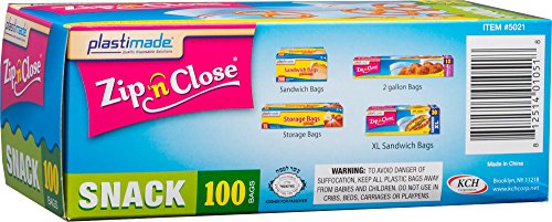 Plastimade Zip 'n Close Snack Bags 100 Count Pack Of 1
