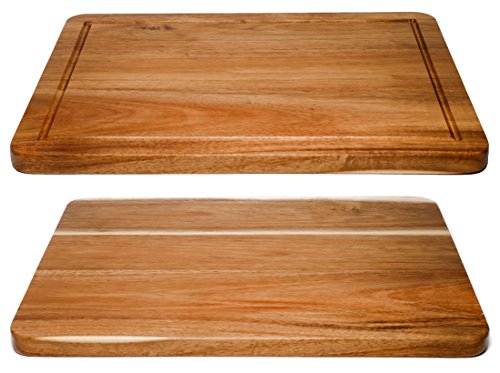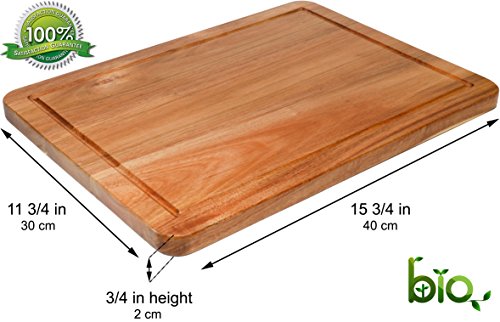 * BEAUTIFUL DESIGN: Our Wooden Cutting Boards are both beautiful and functional. Designed to protect the sharpest blades, the boards also provide stability during use and look handsome enough to keep out on the counter. It has a perimeter groove to collect meat and fruit juices. Board Size is 15 3/4" x 11 3/4" x 3/4"