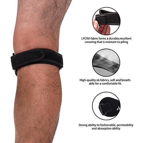 -. Feature : RELIEVE YOUR PAIN WITH COMPLETE SUPPORT - You deserve better than cheaply made knee straps. The thick padding of this strap provides reliable pressure on your patella to ease your pain. It brings protection and peace of mind during your favorite sports or exercise in the gym. / HIGH PERFORMANCE - Patellar Tendon Knee Stabilizer Bands are for both men and women and are extremely comfortable. They can be worn everyday to help you get the support you need! Great for hiking, soccer, volleyball, running, jumping, basketball, tennis, cycling, and doing squats. / DURABLE & HIGH QUALITY- This Adjustable Knee Strap is made up of high-quality materials which gives it longer life and makes it durable. Unlike other Knee straps available in the market which gives you a scratchy feeling, this straps are made of high-quality neoprene & nylon which makes it light & soft, so you don't feel any weight on your knees. The fabric absorbs the sweat and thus prevents any wet or slippery feeling on the knee. / FITS MOST AND HIGHLY ADJUSTABLE - With Velcro closure, this adjustable and stretchy strap fits well for most adults and kids. It also holds tight and won't slip out of place even if your leg gets sweaty. This size fits all unisex. It's designed to be your perfect companion. / AFTER-SALES SERVICE - If the product has a problem, please contact us the first time, we will reply to you as soon as possible, so you have the confidence to buy, just let you know that we always adhere to our products. So now order and get this incredible adjustable knee to immediately relieve knee pain.