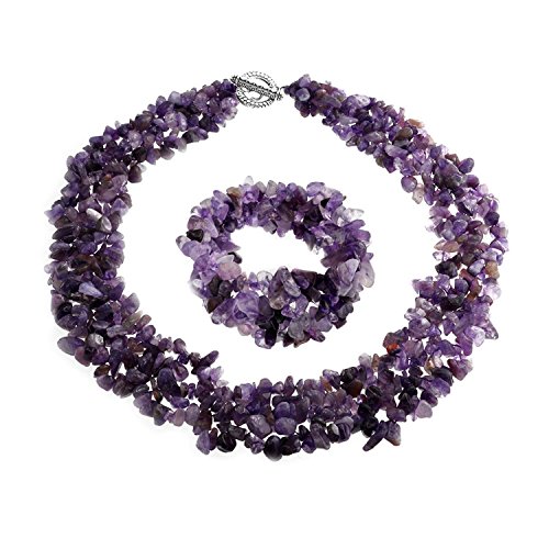 Bling Jewelry Multi Strands Amethyst Chips Cluster Necklace and Bracelet Set