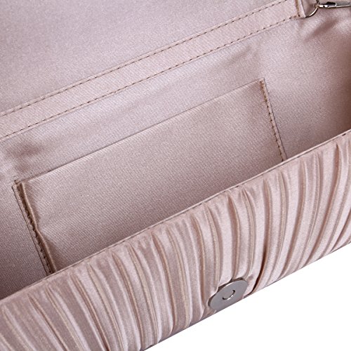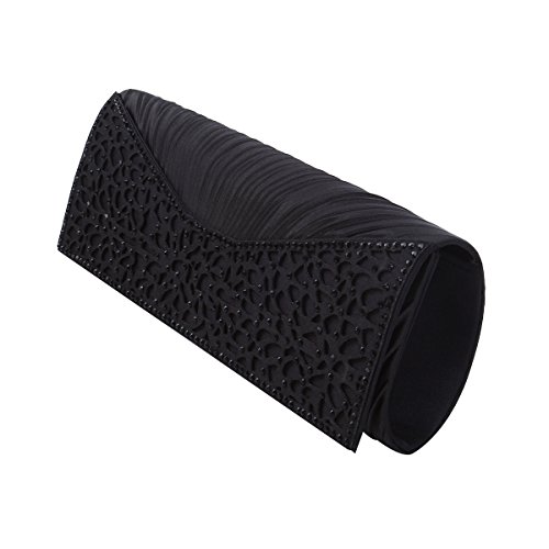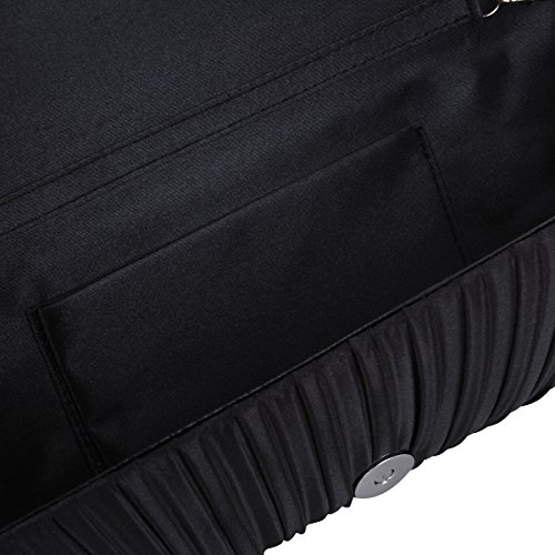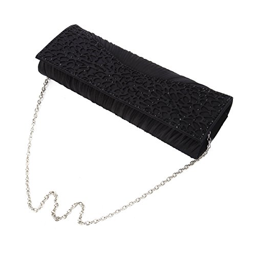 -. Feature : Elegant satin fabric clutch evening bag with sparkling rhinestones / Fabric lining. Magnetic-flap closure. Interior wall pocket. / Removable hideaway shoulder chain strap with 22" drop / 10" (L) x 4" (H) x 1.75" (W) / High quality with different vibrant colors available