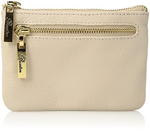 Supreme Quality Pebble Leather, with Gold tone Zipper and Buxton Logo Zipper Pull Florence Mini Zip Pouch features an outside zip pocket and inside pocket.