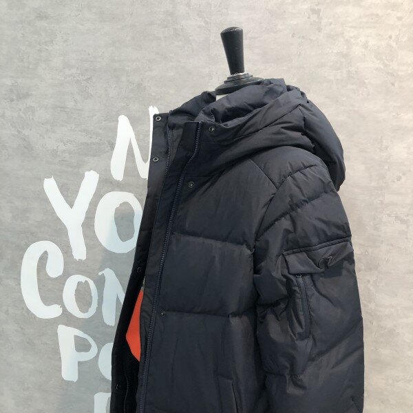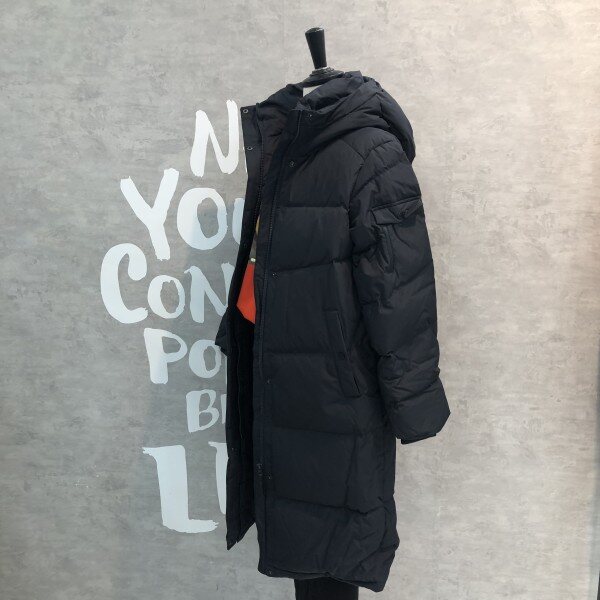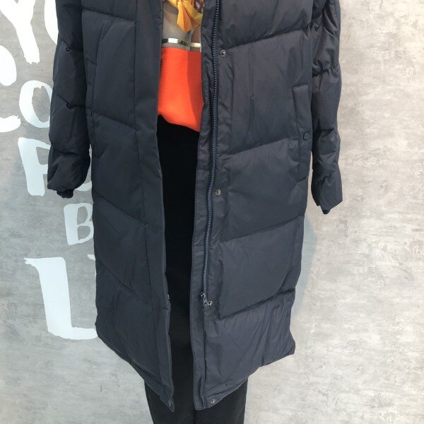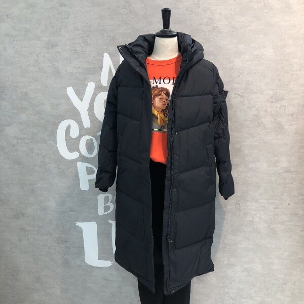 퀼팅 디자인에 오리털충전재로 보온성이 우수한 심플한디자인의 롱패딩 점퍼입니다