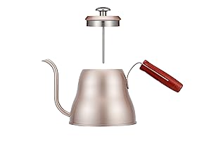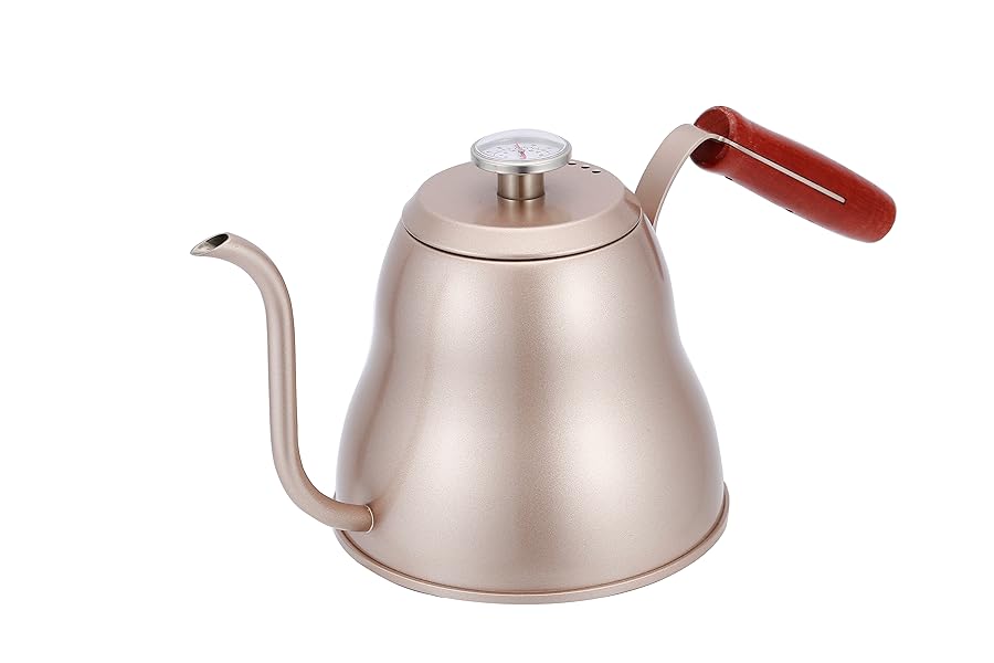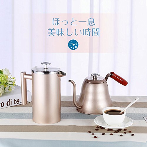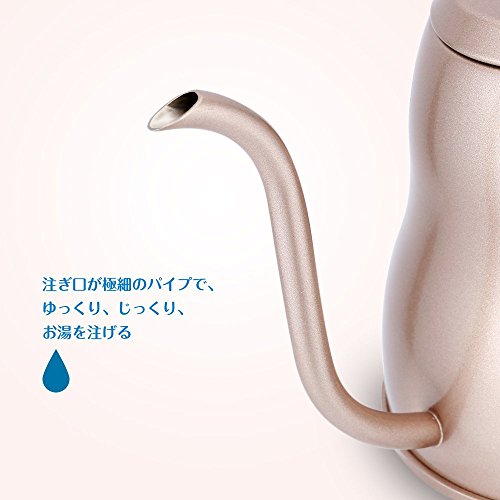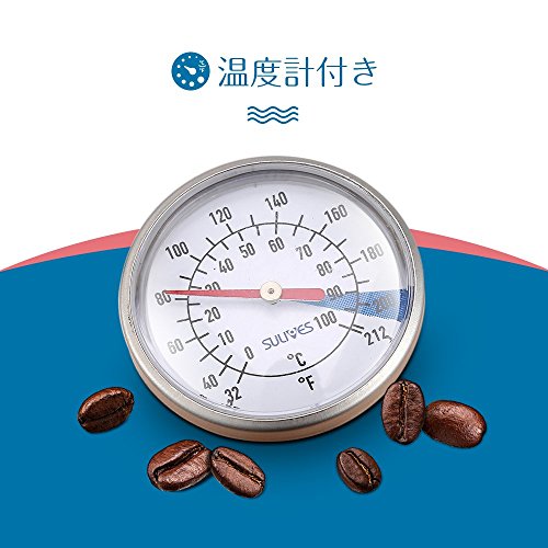 ■【シンプルのデザイン】注ぎ口は細いのでお湯の速度が安定です。「s」の構造で完璧な注ぎ角度なので美味しいコーヒーが淹れられる。蓋のロックがかかるなのでお湯を注ぐ時水流が集中できます。 【優れた高級感】ステンレスで作られ、こだわりの質感と高級感が溢れます。鋭いエッジがなくて、ケガの心配がなく気軽にお茶とコーヒーなどを入れることができます。卓上に置いておしゃれな飾り品です | ■【温度計付き】——美味しいコーヒーを出来上げるならば、90-96℃がおすすめ。 | ■-お取扱いについて- ○電子レンジでご使用いただけません。 ○空焚きをしないでください。 ○満水の状態で火にかけないでください。 ○ガス台でご使用の際はバランスが悪い状態で火にかけないでください。 ○火にかけると取っ手やツマミが熱くなる場合がございますのでミトンなどをご利用ください。 ○取っ手が加熱されて変質や変形の危険がありますので、炎が本体底面からはみ出さないよう火力を調節してください。 ○錆を予防するために汚れや水分は早めに落とし、十分に乾燥させ、他の金属との接触を避けて収納してください。 |