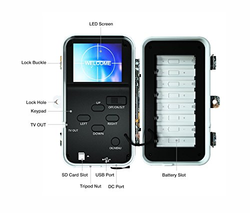 2. Stealth design and energy saving: Camo design makes the camera stealth and ideal for outdoor animals scouting, home security surveillance or office monitoring. And the operating temperature is between -22 ~ + 158 ° F/-30 ~ + 70° C. Long in-field battery life (in standby mode, up to 3 - 6 months with 8*AA batteries and Auto power off in 10 minutes while no keypad controlling).