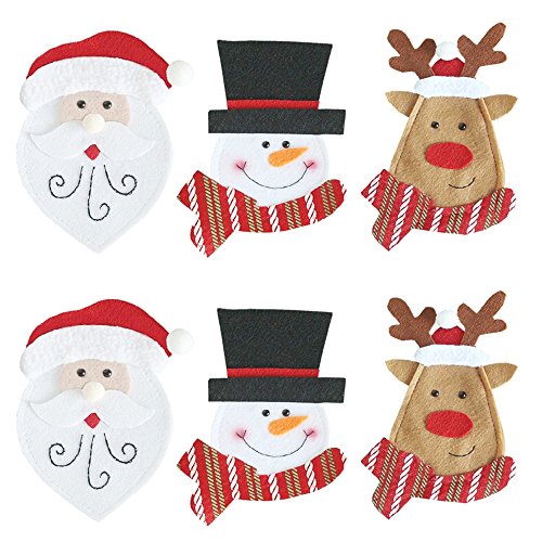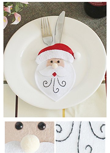 [ Cute Design ]: Design excellent and cute Christmas decoration for dinner table. Christmas Forks Knives Dinner Flatware Decoration Holders, Santa Claus Cloth ,Elk ,Snowman Style Tableware Bags Cover Set Pack Of 3.