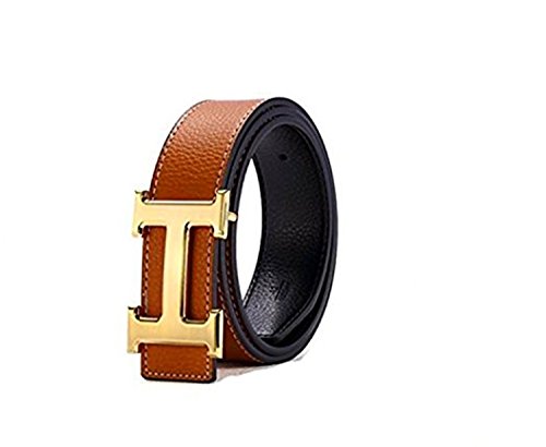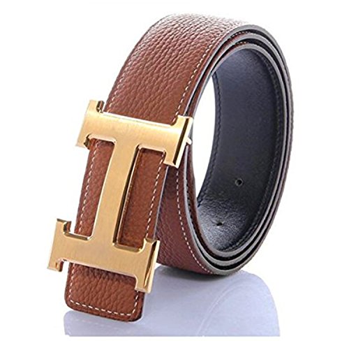 Product Description 1.New H Belts for Men Business Casual Leather Belt 1.5inch Wide 2.Belt size: 105CM(28-34 inch), the belt is suitable for all jeans 3.Belt color: Brown and gold alloy buckles 0