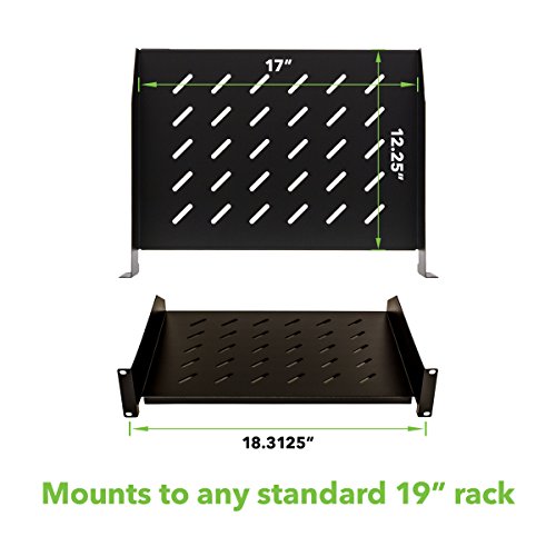 Studio : NavePoint Publisher : NavePoint Binding : Electronics Product Description This line of heavy-duty rack shelves is made from 1.2mm cold rolled steel. Vented to reduce the possibilty of overheating, these shelves are ideal for supporting rack equipment and ancilarry hardware that you choose not to mount directly. Will mount to any standard 19 inch rack or cabinet. Available in 12, 14 and 18 inch depths. 0