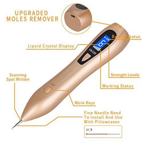 - 【Technology Guarantee】 Using high-tech,electricion carbonation function,sweepinstantly freckles,senile plaques,flat moles,etc. Mole removal can be achieved without bleedingin the case offast,safe and no side effecteof medical beauty.