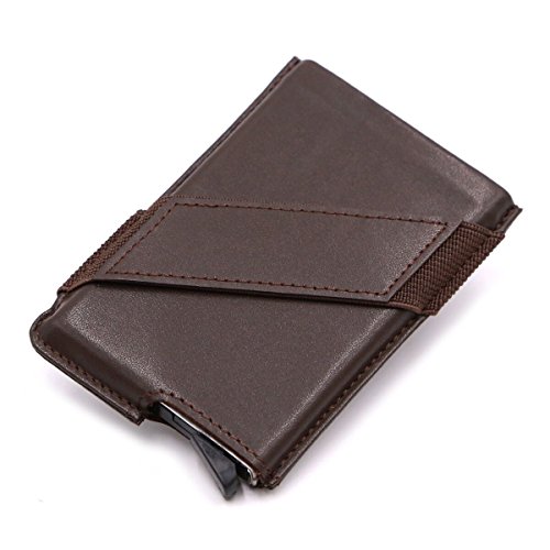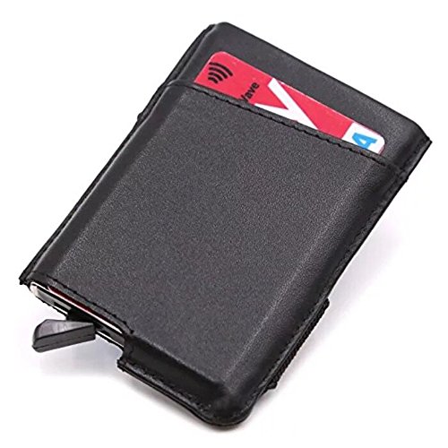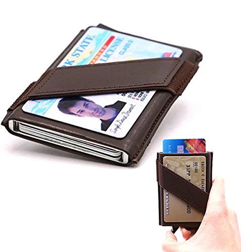 -. Binding : Apparel -. Brand : Freezx -. Department : mens -. Feature : It¡¯s an automatic pop-up card holder. With a lever click, all cards can be slide out easily. / This product includes RFID protection blocking almost all RFID signals from passing through. / Using high quality aluminum and top grain genuine leather. Perfect combination of metal and leather makes it more durable and luxury. / It can store up to 5 credit card size cards or 10 name cards. And you can store some cashes under the elastic band and leather strap and 1 card slot for most used cards outside the case. / This Aluminum card case is small and light which is very easy to carry for travelling or work. -. IsAdultProduct : 0 -. PackageQuantity : 1 -. ProductGroup : Apparel -. ProductTypeName : ACCESSORY -. Title : Minimalist Wallet RFID Blocking Leather Credit Card Holder Automatic Pop-Up