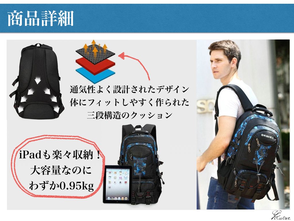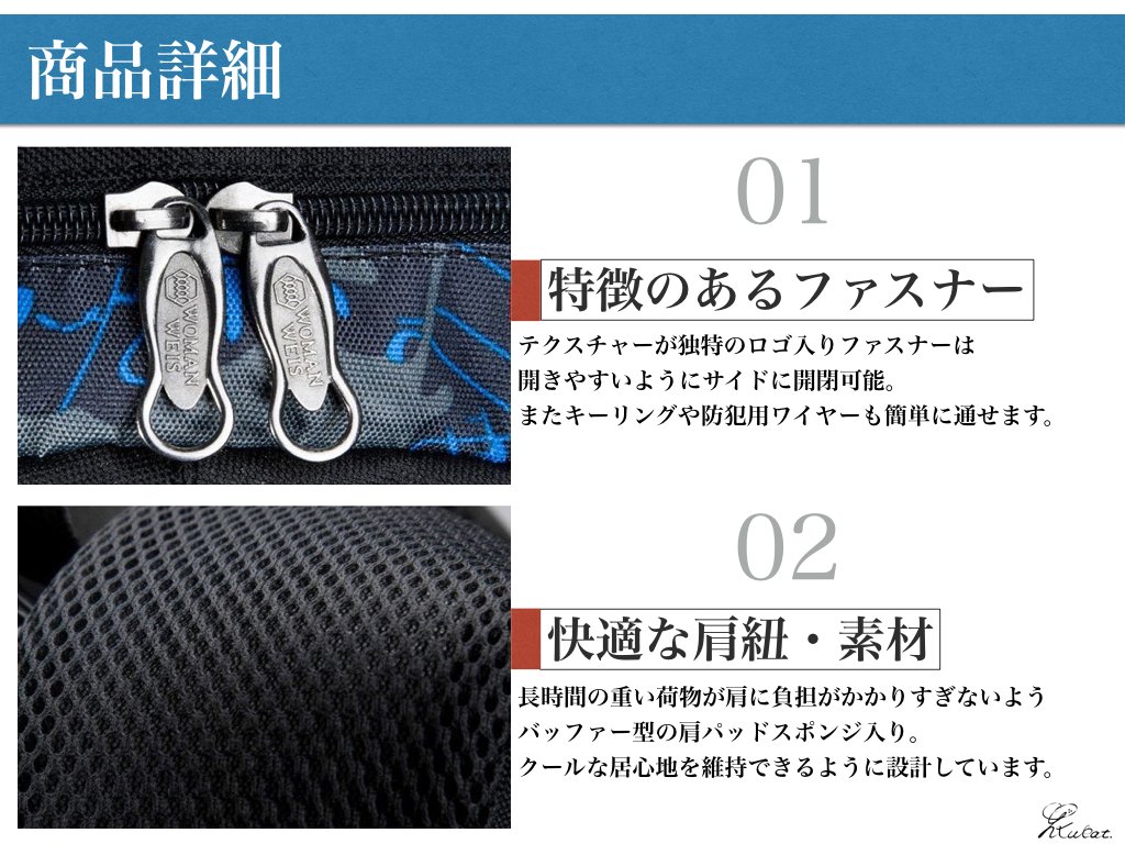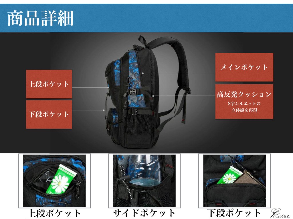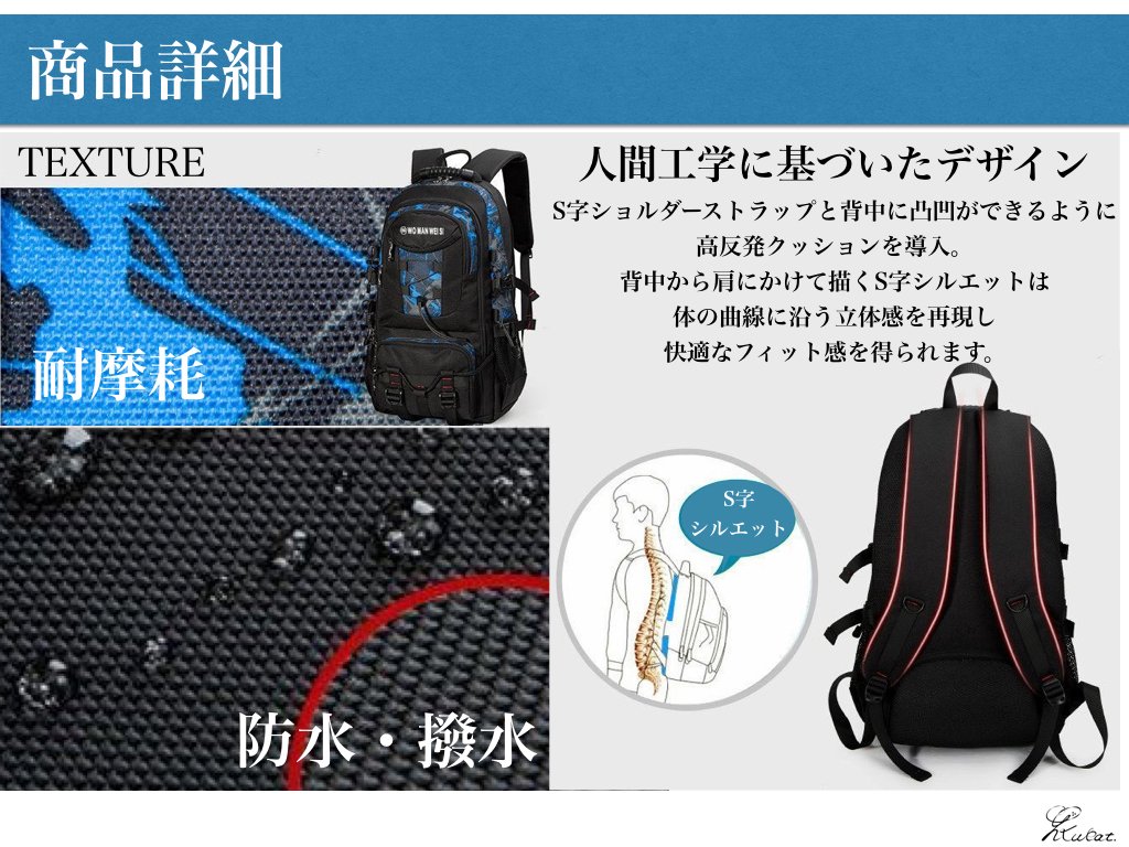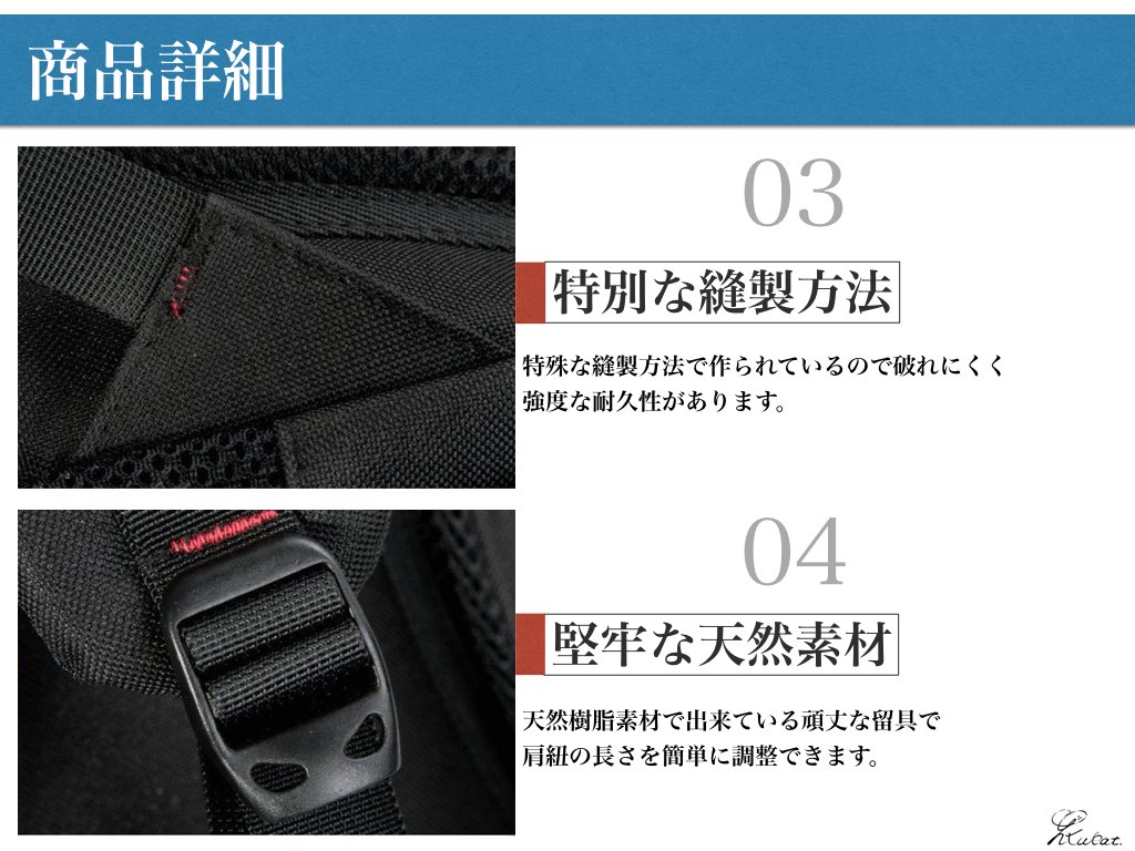 - Introduce highly resilient cushion so that you can make irregularities on the back with S-shaped shoulder strap.