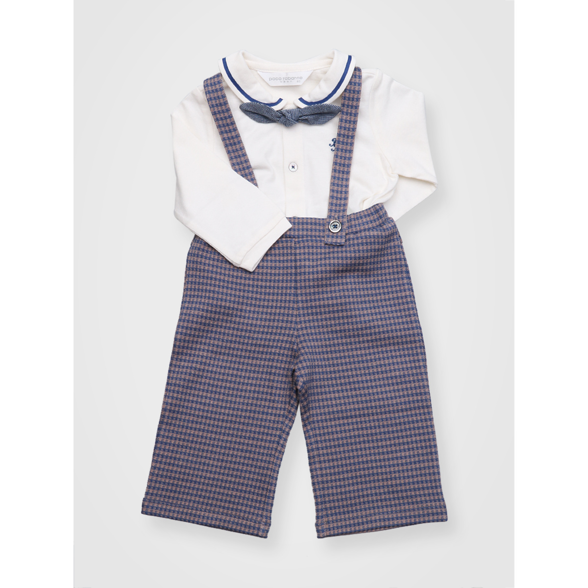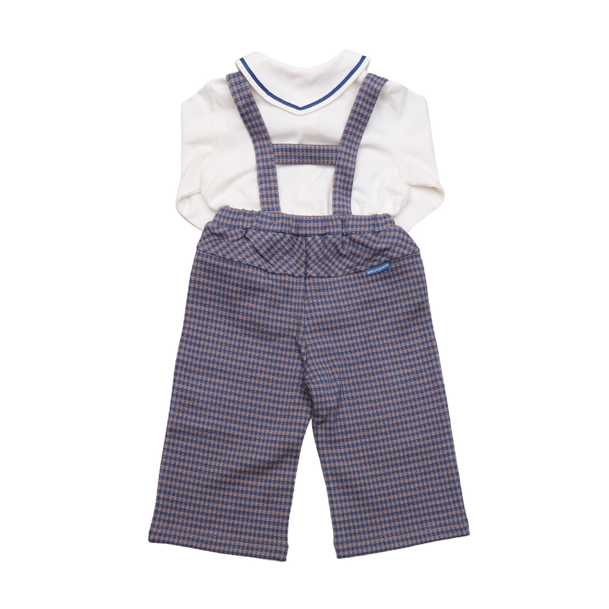 - 고급스러운 체크무늬원단의 멜빵바지와, 귀여운스타일의 면소재 셔츠가 잘 어울어진 멜빵바지 세트입니다..