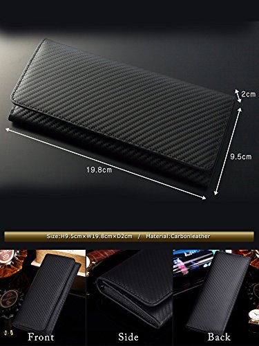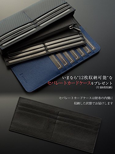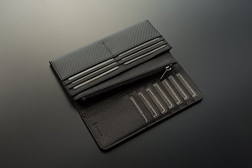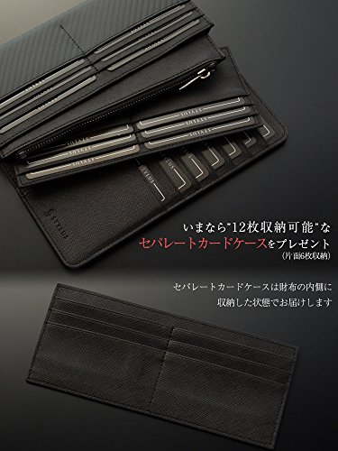 -. Feature : 規格[約]:縦9.5cm×横19.8cm×幅2cm / 素材:カーボンレザー(本革) / [内側]小銭入れ(取り外し可能)、カードポケット25(財布本体13枚、セパレート可能なカードケース12枚収容可能)、フリーポケット3か所 / 最大の特徴である、小銭れとカード入れが着脱可能なセパレート式 / デザインが一流は当たり前、使う人に合わせてスマートなスタイルを実現