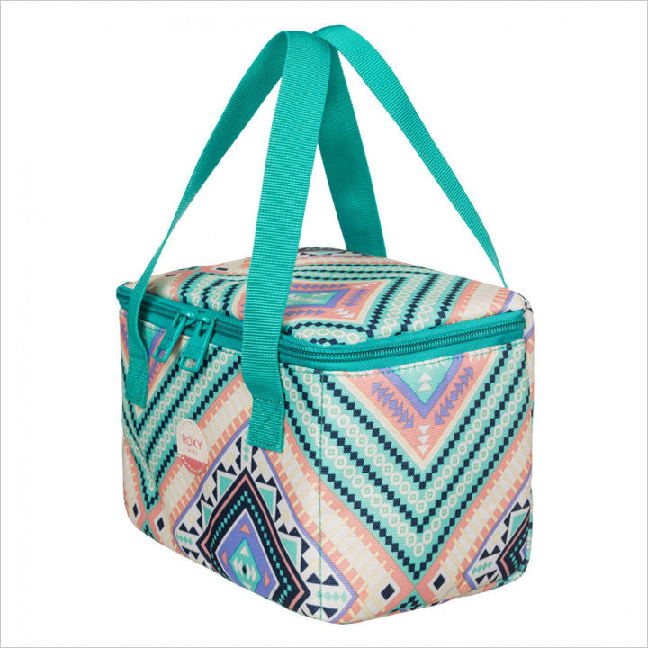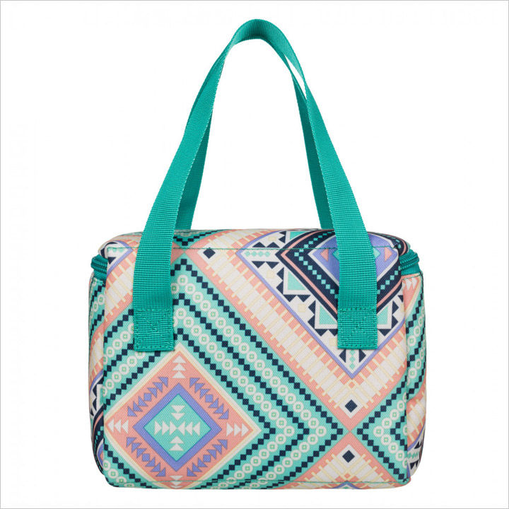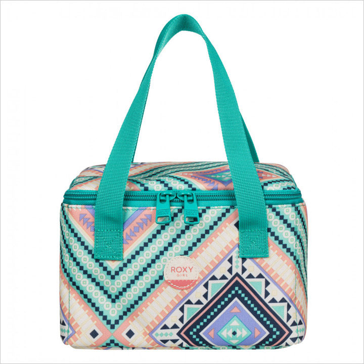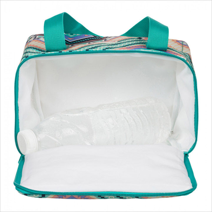 おしゃれキッズにピッタリなコンパクトサイズのジオメトリック柄の保冷バッグ。お弁当やペットボトルなどを収納して持ち歩くのにちょうど良い大きさ。両開きファスナー付きで大きく開くので出し入れもしやすく使い勝手も抜群。