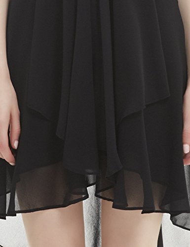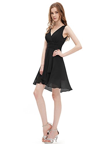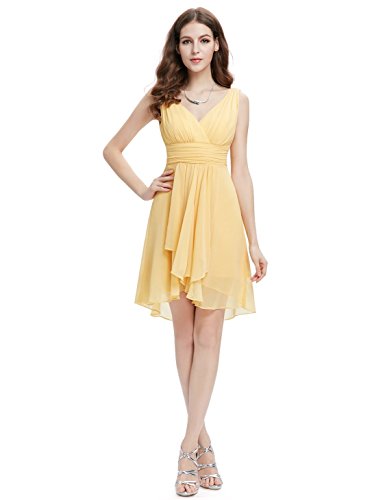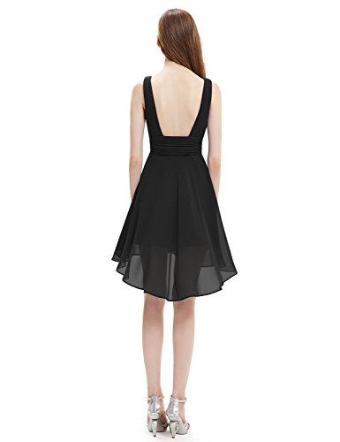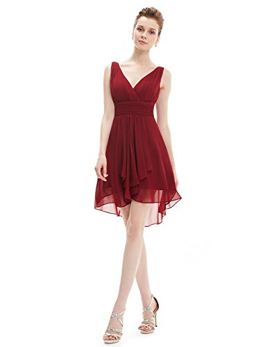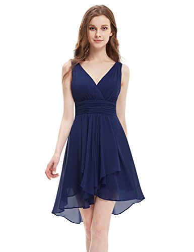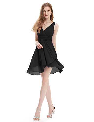 Sexy v-neck bridesmaid dress Padded enough for "no bra" option Unique high low at the hem The center back length(actually from the waist to the bottom, not measure from shoulder point)of size 8-14 are 33"-34",size 16-18 are 34"-35"Feature