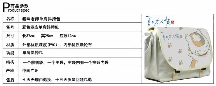 夏目友人帐 包包单肩包斜挎包书包 动漫周边 猫咪老师 娘口三三