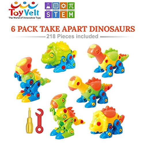 WHATS INCLUDED? - The take a part dinosaur toy set includes 6 dinosaurs, 2 Trex dinosaurs, 2 Ceratops dinosaurs, and 2 brontosaurus, includes a set of 4 unique tools for assembly.includes a total of 4 screw drivers and a Pack of 6 assembled dinosaurs, which can be taken apart and reassembled Unlimited