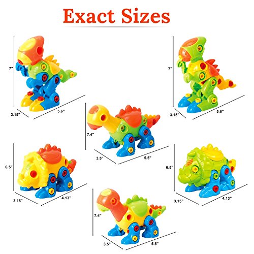 HOURS OF FUN TAKE APART & REASSEMBLE - The dinosaurs is made to be taken apart and reconstructed for hours of fun, Dinosaurs come assembled, Watch your child's excitement as they accomplish their goal and build up all 6 dinosaurs, they will be working hours to assemble this dinosaurs and to reassemble you will love seeing them being creative, they will not be interested looking into your smartphone or watching movies, They will just be Creative like never before