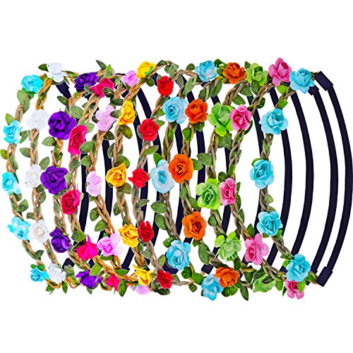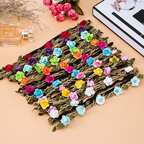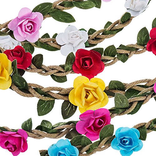 eBoot 12 Pieces Multicolor Rose Flower Headband Women Girl Fashion Floral Crown Garland Headbands with Elastic Ribbon