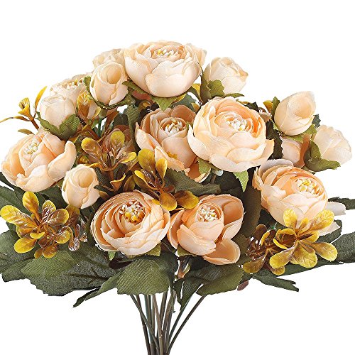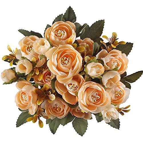 SunAngel 2 Bunches Artificial Flower Bouquet Arrangement Silk Tea Rose Bridal Home DIY Garden Office Dining Table Wedding Decor (Champagne)