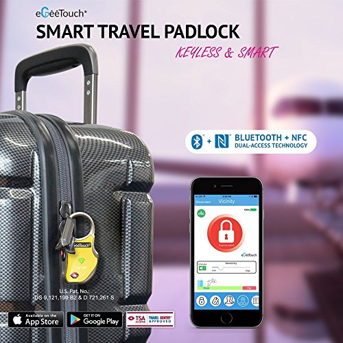 -. Title : eGeeTouch Smart Travel Padlock with Patented Dual Access Technologies (NFC + BT), Vicinity Tracking, etc.