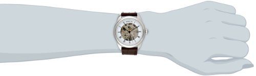 -. Feature : Chinese mechanical movement / Flame fusion crystal; stainless steel case; brown leather strap / Silver skeletonized see-thru dial / Silver skeletonized see-thru dial with black hands and roman numerals; see-thru case back / Water resistant to 99 feet (30 M): withstands rain and splashes of water, but not showering or submersion