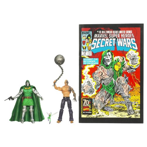 Celebrating the 25th anniversary of the greatest crossover event of all time. The Absorbing Man waits in an unbreakable prison. Meanwhile, Dr. Doom puts the final touches on the most fantastic machine he has ever created. Using sonic lenses, he steals the power of Galactus and flies into space seeking battle with the all-powerful Beyonder. Get in on fast-paced action and excitement as you stage battles with your Absorbing Man and Dr. Doom action figures. Recreate your favorite scenes from the included comic book or create your own super-powered showdowns. With these articulated action figures, their mighty weapon accessories and the tiny Wasp figure, the fate of the world is in your hands. This vividly colored comic pack includes Secret Wars Issue #10 comic book and Absorbing Man and Dr. Doom action figures with weapon accessories and mini figures.