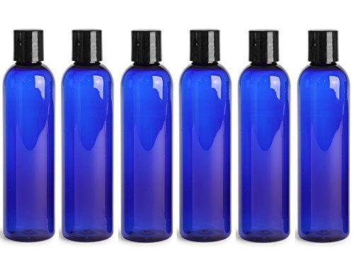 8 oz Empty Cobalt Blue Plastic Cosmo Squeeze Bottles with Disc Top Flip Cap (6 pack); BPA-Free Containers For Shampoo, Lotions, Liquid Body Soap, Creams...