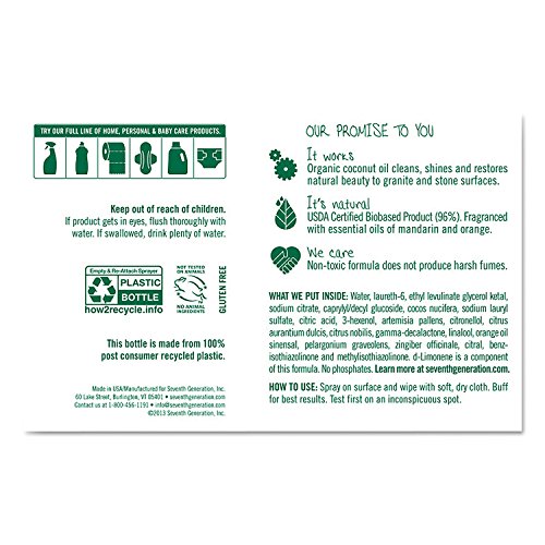 Seventh Generation Granite and Stone Cleaner, Mandarin Orange Scent, 18 Ounce Spray Bottle