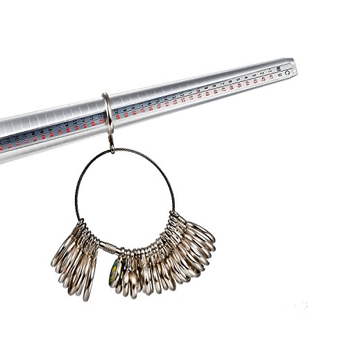 Ring Mandrel Sizer Finger Sizing Measuring Stick Metal - Size 1-13, with Ring Sizer Guage Set of 27 Pcs Circle Models