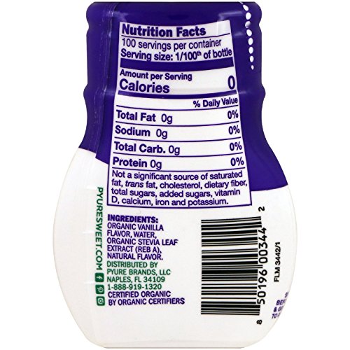 -. Feature : Pyure Organic Liquid Stevia Sweetener Extract, Vanilla, 1.8 Fluid Ounce is perfect for sweetening 'on-the-go'. Toss this your bag, keep on your desk, or carry in your pocket. / Highly concentrated sweetener. Complete sugar substitute for sweetening hot and cold beverages, iced teas, coffees and your favorite recipes. / Sugar-free, Calorie-free, Gluten-free, contains Zero Carbs and a Zero Glycemic Index making it perfect for those with sugar sensitivities. / USDA Organic Certified, Non-GMO Project Verified / Diabetic-Friendly. Excellent sweetening solution for Keto, Paleo and Candida lifestyles. / So sweet, you'll forget sugar was ever an option. Perfectly sweet, no bitterness of aftertaste. / 1 squirt= 2 tsp of sugar. Approximately 100 servings per container. / Nothing Artificial. Dissolves great and mixes well.
