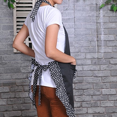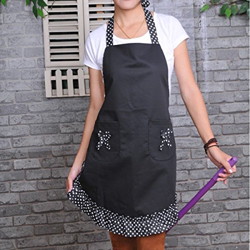 FENICAL Cute Princess Style Dots Pattern Falbala Kitchen Cooking Apron Women Ladies Apron with 2 Bowknot Pockets (Black)