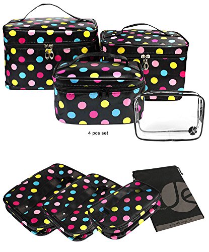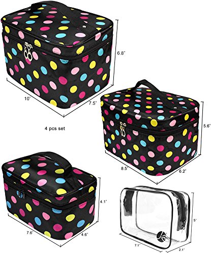 JAVOedge (4 PCS SET) Polka Dot Makeup Brush Cosmetic Travel Organizer Bag With Clear PVC Storage Zipper Bag (4 Sizes)