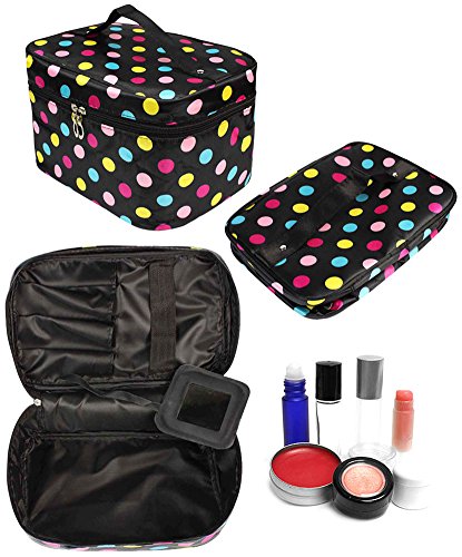 - COSMETIC ORGANIZATION AT A VALUE- BUNDLE includes 3 QTY x Polka Dot Cosmetic Bags, 1 QTY x PVC Clear Zipper Toiletry Bag, 1 QTY x Duster Bag for storage. BEST DEAL on the market without compromising QUALITY.