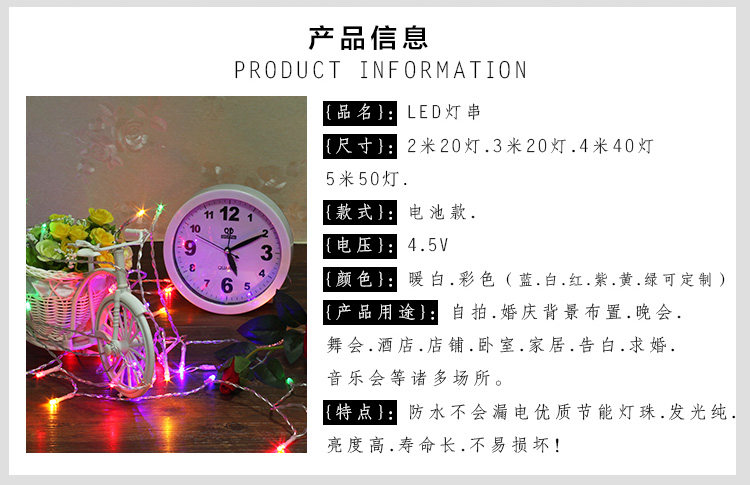 Size: 2 meters 20 lights, 3 meters 30 lights, 4 meters 40 lights, 5 meters 50 lights,