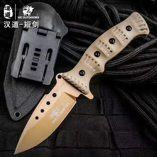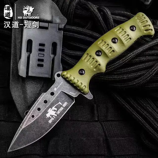 | [해외] HX 야외 440C 전술 직선 칼 3 옵션 K10 핸들 생존 야외 나이프 유틸리티 캠핑 EDC 칼 도구 Kydex |