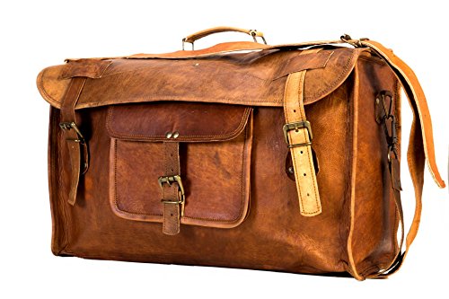 - Naturally (using vegetable oil) tanned Fair Trade goatskin produced by small family-run businesse This fantastic, in-style and yet practical leather bag is perfect to use as an travel bag,festival bag, weekend bag or as gym bag