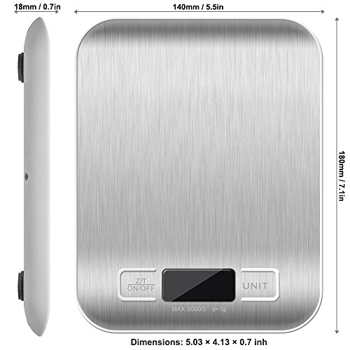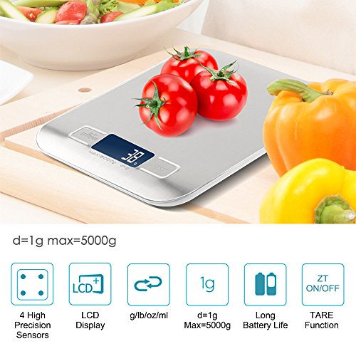 HIGH PRECISION SENSORS: Equipped with 4 high precision sensors to provide an accurate weighing. 5kg/11lb capacity, suitable for baking or cooking in kitchen.