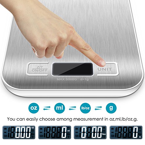 Multifunction Digital Scale in Kitchen, FineGood Stainless Steel Food Scale with LCD Display and Tare Function (Batteries Included) - Silver