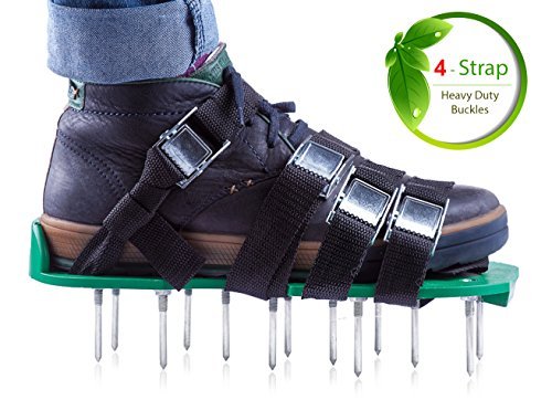 Professional Lawn Aeration Sandals with 4 Adjustable Durable Straps for Effective Treating, Aerate, Fertilize Lawn Soil-Lawn Aerator Shoes with Metal Buckles for Greener and Healthier Grass,Yard Care.