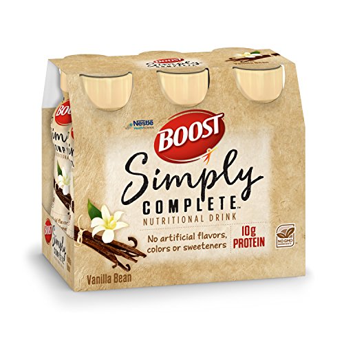 -. Binding : Grocery -. Brand : Boost Nutritional Drinks -. Feature : New!. (Packaging May Vary) Imagine a nutritionally complete drink with simply 9 ingredients plus a blend of 25 vitamins & minerals. BOOST Simply Complete Nutritional Drink-with vitamins & minerals and 10 g of high-quality protein-simply supports your nutritional needs for an active lifestyle. / BOOST Simply Complete Nutritional Drink is NON-GMO, made without genetically engineered ingredients according to Nestlé's Non-GMS standards / Try this great-tasting drink in two flavors: Dark Chocolate and Vanilla Bean. / Suitable for people with gluten sensitivity or celiac disease. Suitable for lactose-free diets* (*Not for individuals with galactosemia) / Shake well. Chill before serving. :) -. Label : Boost -. Manufacturer : Boost -. ProductGroup : Grocery -. ProductTypeName : GROCERY -. Publisher : Boost -. Studio : Boost -. Title : Boost Simply Complete Nutritional Drink