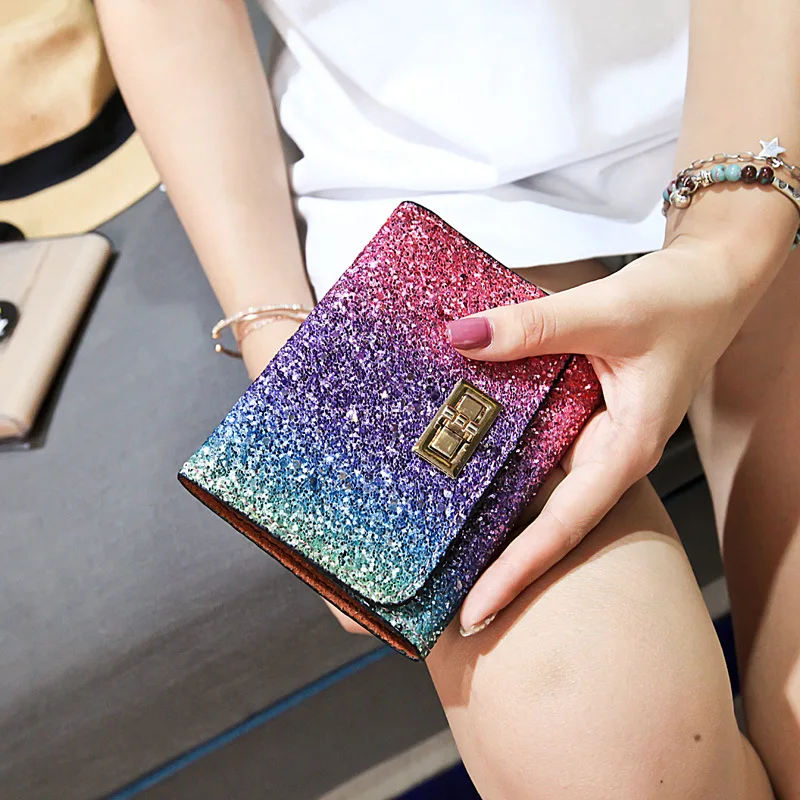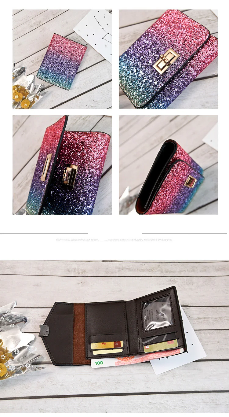 Color:5 Style Rainbow Multicolor Sequined Wallet