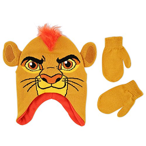 Disney Little Boys The Lion Guard Kion Acrylic Hosiery Knit Winter Character Shaped Contoured Short Hat with Pinched Knit Ears and Matching Mitten Set